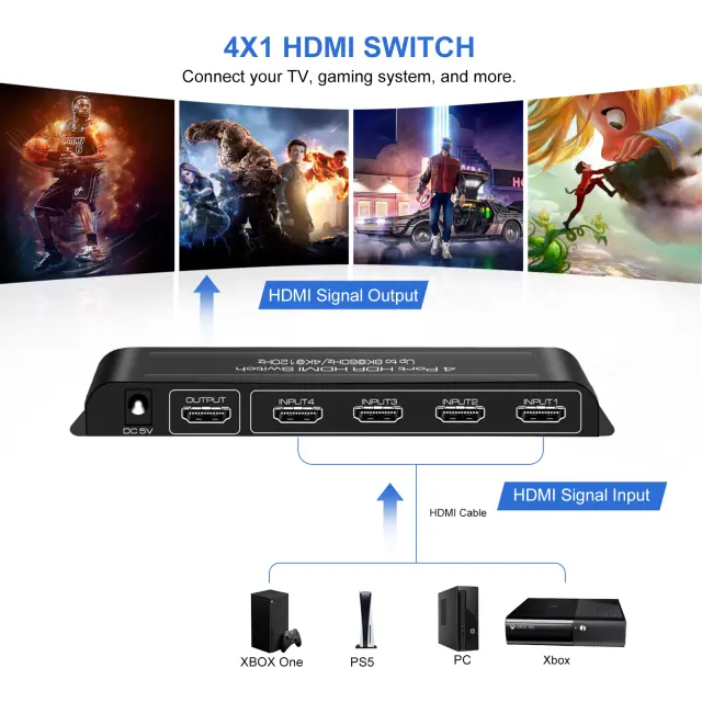 Preprosto preklapljanje: Preklapljajte med štirimi viri HDMI z lahkoto s priloženim daljinskim upravljalnikom. Uživajte v izkušnji brez težav brez ročnega priklapljanja in odklapljanja naprav.