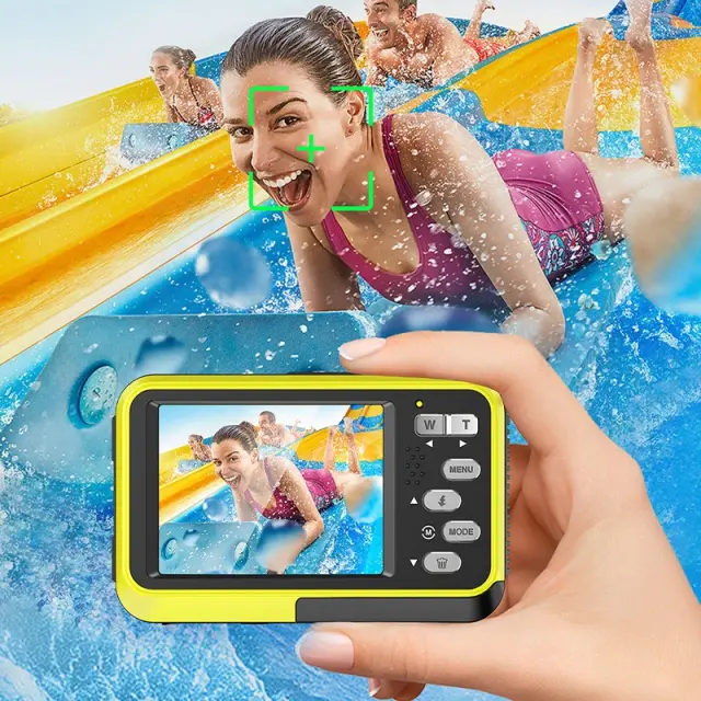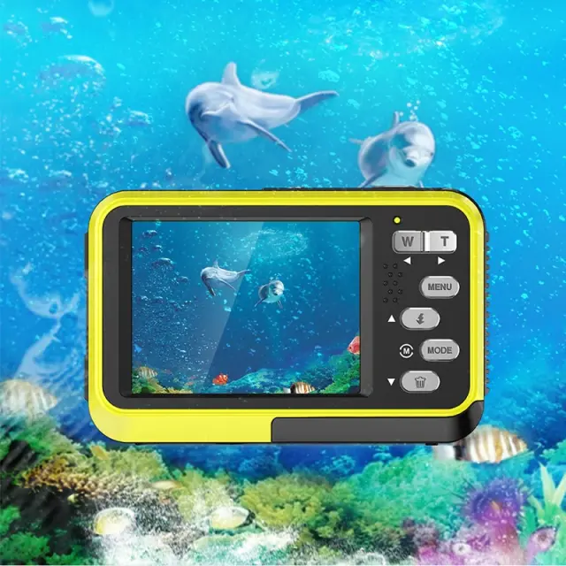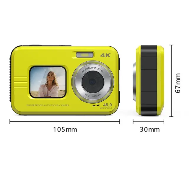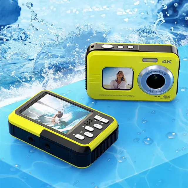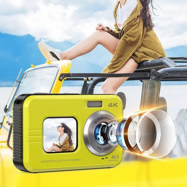 4K Vodoodporni Digitalni Fotoaparat z Dvojnim Zaslonom za Selfije Yellow