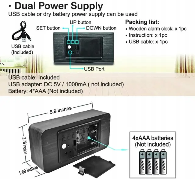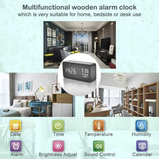 Digitalna ura z elegantnim lesenim ohišjem je popoln dodatek za spalnico, pisarno ali dnevno sobo. Njegove osvetljene številke so popolnoma vidne podnevi in ponoči , funkcija alarma deluje vsak dan in eleganten zaslon izgleda odlično v vsaki notranjosti.