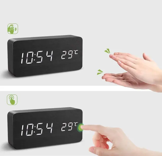 Ta model ima sodobno funkcijo osvetlitve ure po ploskanju zahvaljujoč zvočnemu senzorju.
