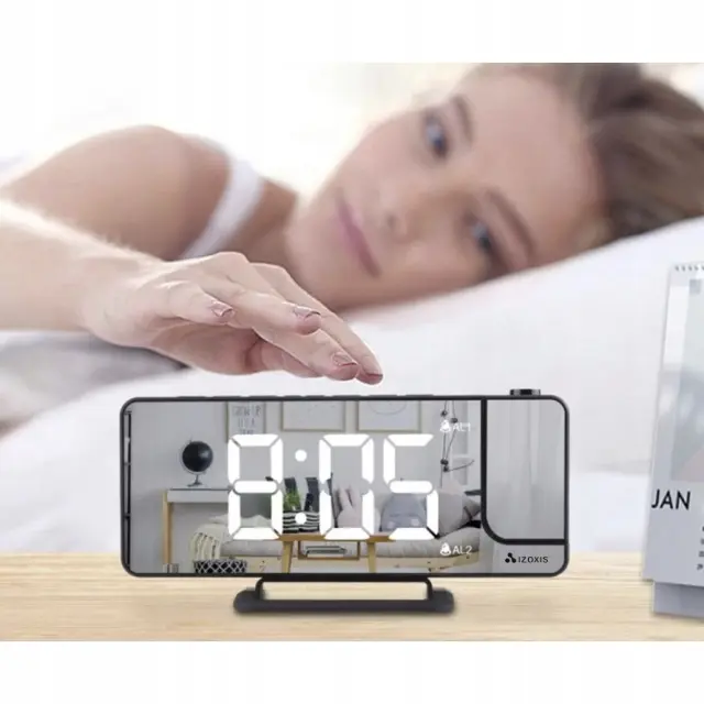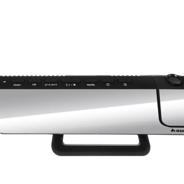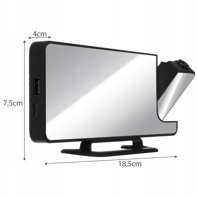 4v1 – ura, budilka, ogledalo in projektor ! Vse v eni kompaktni napravi. Budilka je opremljena z zrcalno sprednjo stranjo, na kateri so prikazane informacije, kot je ura. Kompaktne mere in majhna teža vam bodo omogočile, da ga vzamete na potovanje. Odlična bo tudi pri spanju v šotoru, kjer zrcalna sprednja stran omogoča hitro ličenje in pričesko.