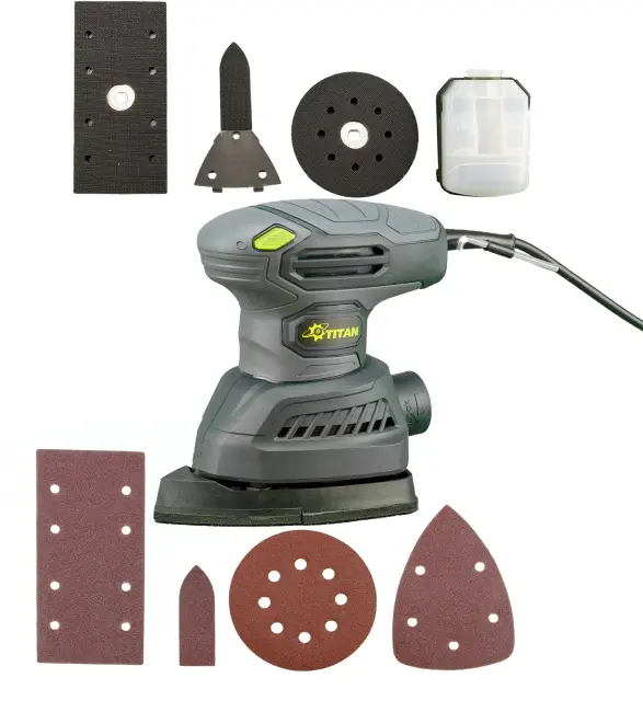 Večnamenski brusilnik Titan BMFS22125 je zelo zmogljiv vsestranski stroj s svojimi močnimi 220 W in hitrostjo vibracij 12000 vrt/min.
