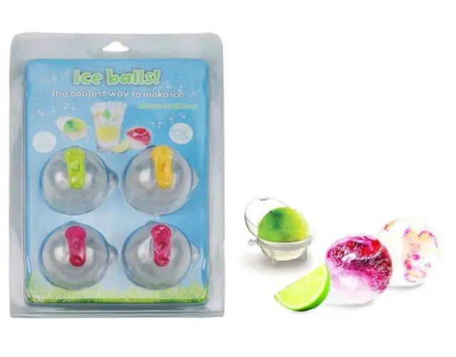 Set 4 prozornih kalupov za ustvarjanje elegantnih ledenih kroglic. Tesen, silikonski čep olajša polivanje kroglic z vodo in poveča njihovo tesnost med shranjevanjem v zamrzovalniku. Je popoln pripomoček za kuhinjo in zabave za hlajenje in okrasitev vaših pijač in napitkov.