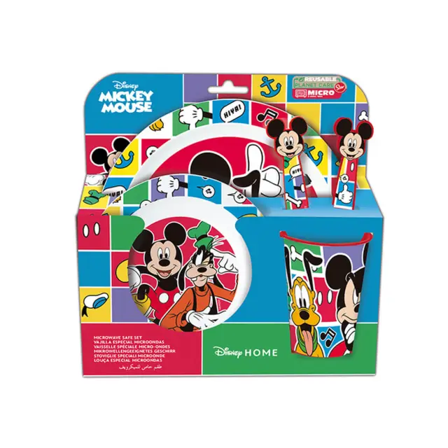 Vnesite čarobnost Disneyevega junaka Mickeya v vsak obrok z ljubkim 5-delnim jedilnim setom, zasnovanim posebej za otroke starejše od 4 let. Set vključuje: