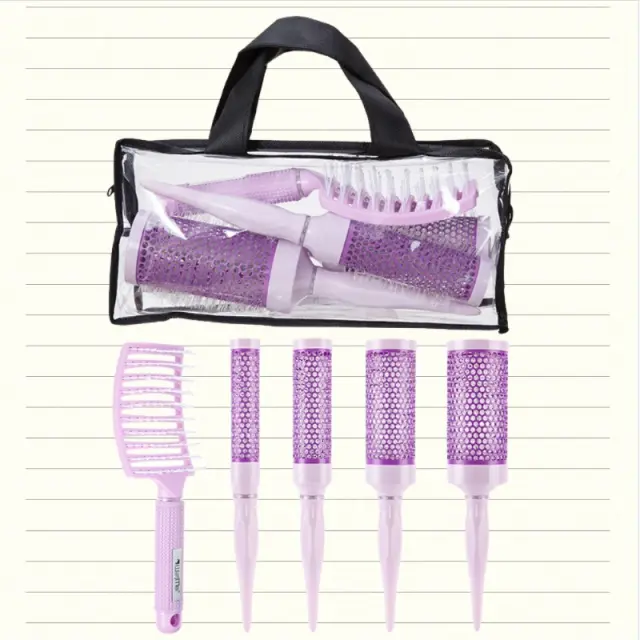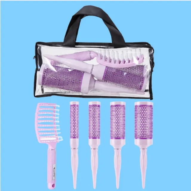 5-delni set glavnikov z 3D zračno blazino - Komplet vijoličnih krtač za vse tipe las