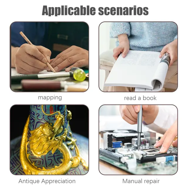 Z visokoločljivostno stekleno lečo in udobnim gumijastim ročajem je naša povečevalna lupa idealna za opazovanje drobnih podrobnosti v knjigah, časopisih z drobnim tiskom, revijah, zemljevidih, elektroniki, miniaturah in še več.
