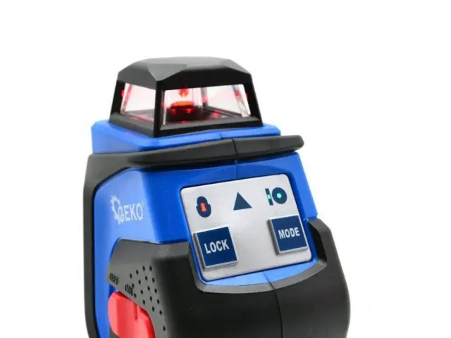 navpična črta prečna črta + 360 ° črta Črta 360 ° Trije načini dela Omogoča projiciranje diagonalnih črt Natančne in zelo dobro vidne laserske črte 1/4 “navojni nosilec Laserski razred: 2 Natančnost izravnave: ± 3 mm / 10 m Delovno območje: 20 – 25 m Napajanje: 4 AA (LR6) 1,5V baterije Navoj stojala: 1/4 “