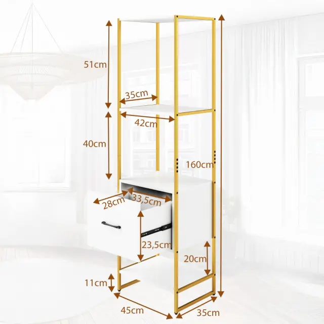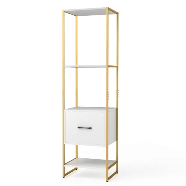 5-stopenjska knjižna omara s predalom in kovinskim okvirjem Sodobna knjižna omara