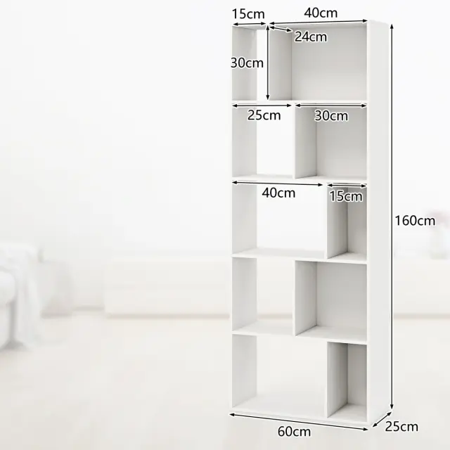 5-stopenjska knjižna omara z 10 policami Lesena knjižna omara