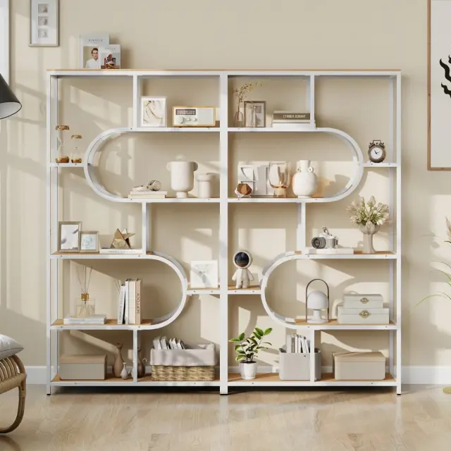 Prefinjen geometrijski dizajn: ta 8-nadstropna knjižna omara s privlačno strukturo v obliki črke U ponuja drzno alternativo tradicionalnim knjižnim omaram. Edinstvena oblika doda eleganco vsakemu prostoru in združuje funkcionalnost z umetniškim pridihom.