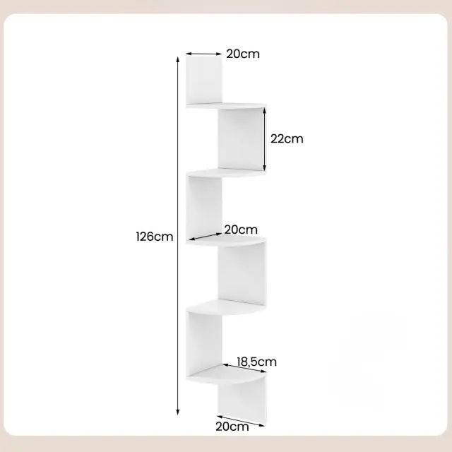 5-stopenjska viseča vogalna polica Plavajoča knjižnica Stenska plavajoča polica Bela