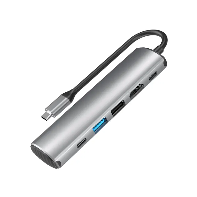 Obsežna povezljivost: naš 5-v-1 HUB ponuja vsestranske možnosti povezovanja, vključno z napajalnikom Type-C, USB-C do PD3.1, HDMI 4K 60Hz, USB 2.0, USB 3.0 in USB-C 3.0, nudi rešitve za podatke prenos, prenos moči in zaslon visoke ločljivosti.