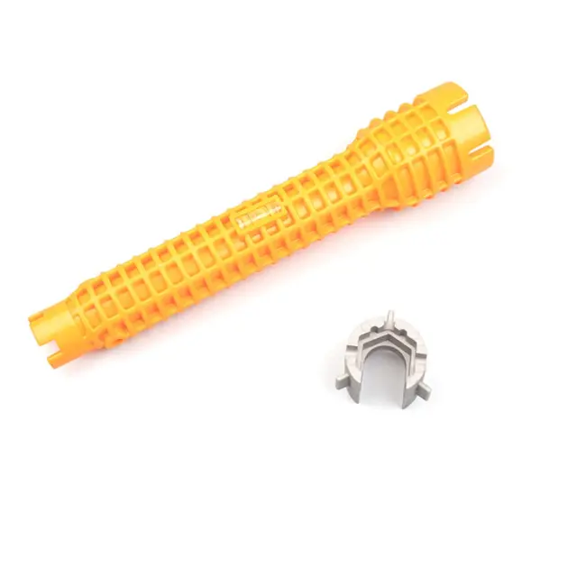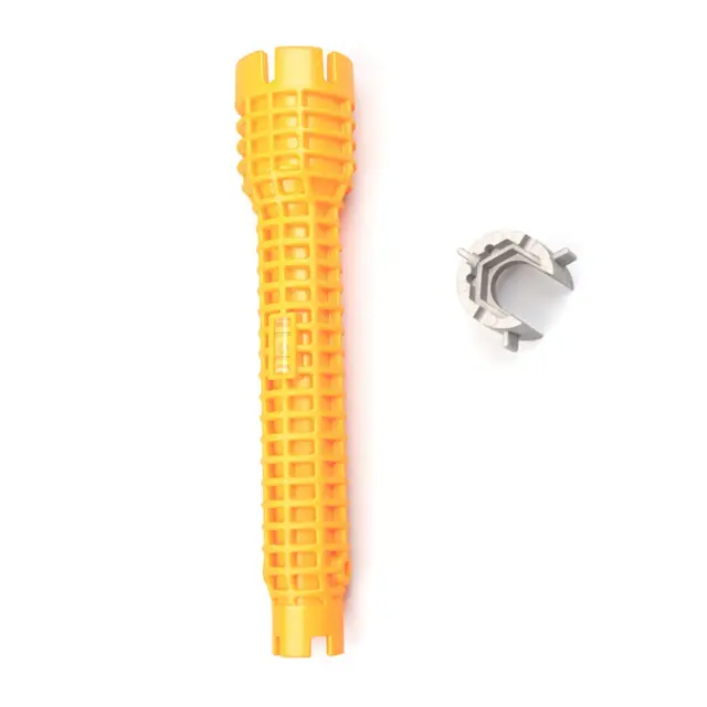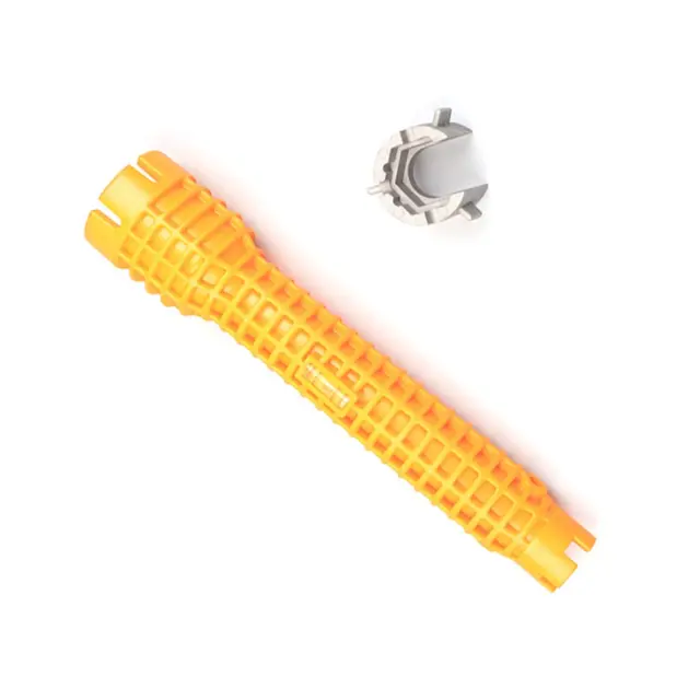 Enostavna identifikacija: Ta večnamenski vodovodni ključ v svetlo rumeni barvi je enostavno najti v natrpani škatli z orodjem ali na polici v delavnici. Priloženi ročaj x1 in sponka x1 v paketu zagotavljata, da je orodje pripravljeno za takojšnjo uporabo na priključkih pipe in umivalnika. Barva in kompaktna postavitev omogočata priročne servisne klice na kraju samem in domača popravila, saj tehnikom in lastnikom domov pomagata hitro najti pravi 5-v-1 ključ za umivalnik za priključke pipe, kotnega ventila in grelnika vode.