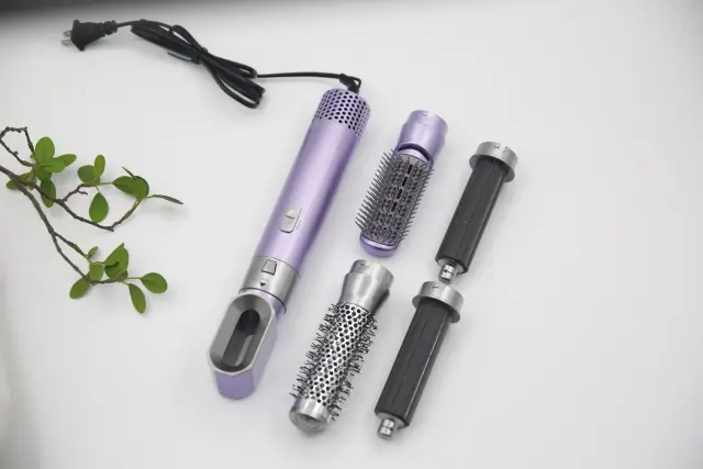 Uporabniku prijazna oblika: Ta krtača za vroč zrak, zasnovana z mislijo na udobje uporabnika, ima ergonomski ročaj za udoben oprijem in enostavno manevriranje. Lahka zasnova zmanjšuje utrujenost rok med oblikovanjem, vrtljiva vrvica pa preprečuje zapletanje. Glave krtač je enostavno pritrditi in odstraniti, kar olajša preklapljanje med različnimi možnostmi oblikovanja. Tiho delovanje zagotavlja mirno izkušnjo oblikovanja, združljivost z dvojno napetostjo pa jo naredi popolno za potovanja. Združljiva z različnimi dodatki za lase, je ta naprava za oblikovanje nepogrešljiva za vse, ki cenijo udobje in enostavnost uporabe.