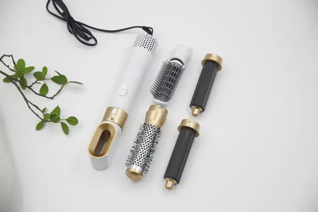 Uporabniku prijazna oblika: Ta krtača za vroč zrak, zasnovana z mislijo na udobje uporabnika, ima ergonomski ročaj za udoben oprijem in enostavno manevriranje. Lahka zasnova zmanjšuje utrujenost rok med oblikovanjem, vrtljiva vrvica pa preprečuje zapletanje. Glave krtač je enostavno pritrditi in odstraniti, kar olajša preklapljanje med različnimi možnostmi oblikovanja. Tiho delovanje zagotavlja mirno izkušnjo oblikovanja, združljivost z dvojno napetostjo pa jo naredi popolno za potovanja. Združljiva z različnimi dodatki za lase, je ta naprava za oblikovanje nepogrešljiva za vse, ki cenijo udobje in enostavnost uporabe.