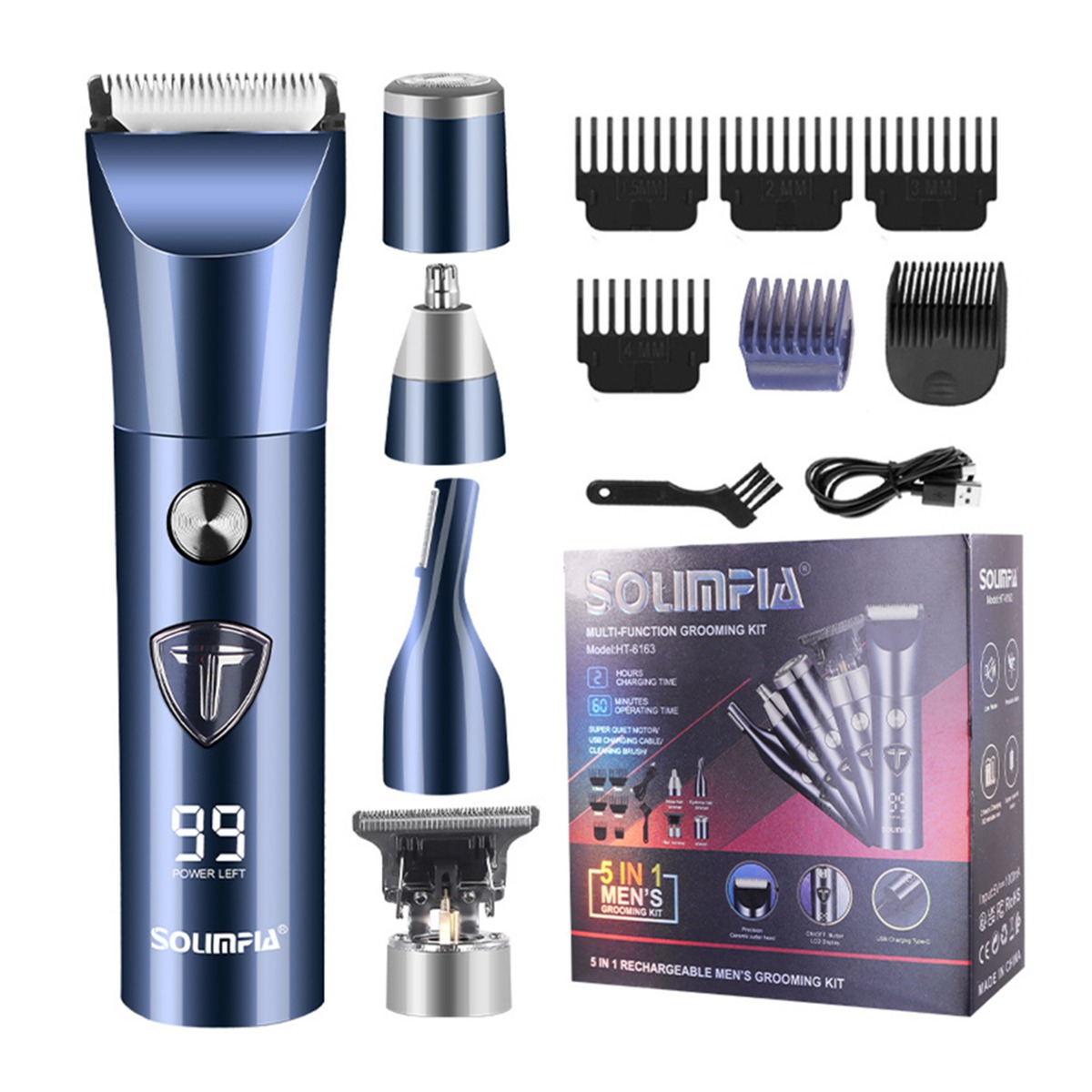 5-v-1 Multifunkcijski Električni Strižnik Las z LED Zaslonom Blue