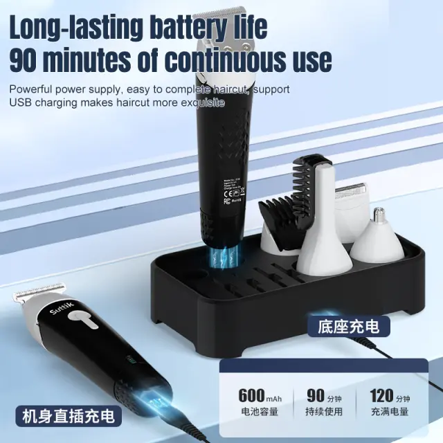 Dolgotrajna življenjska doba baterije: Opremljen s 600mAh litijevo baterijo, ta komplet za urejanje ponuja do 90 minut delovanja z enim 120-minutnim polnjenjem. Zmožnost polnjenja prek USB zagotavlja prilagodljivost in priročnost, saj vam omogoča polnjenje naprave z različnimi viri napajanja, kot so prenosniki, prenosne baterije ali USB adapterji. Uživajte v neprekinjenih sejah urejanja brez težav s pogostim polnjenjem. Dolgotrajna baterija zagotavlja, da lahko svojo rutino urejanja zaključite z lahkoto in učinkovitostjo.