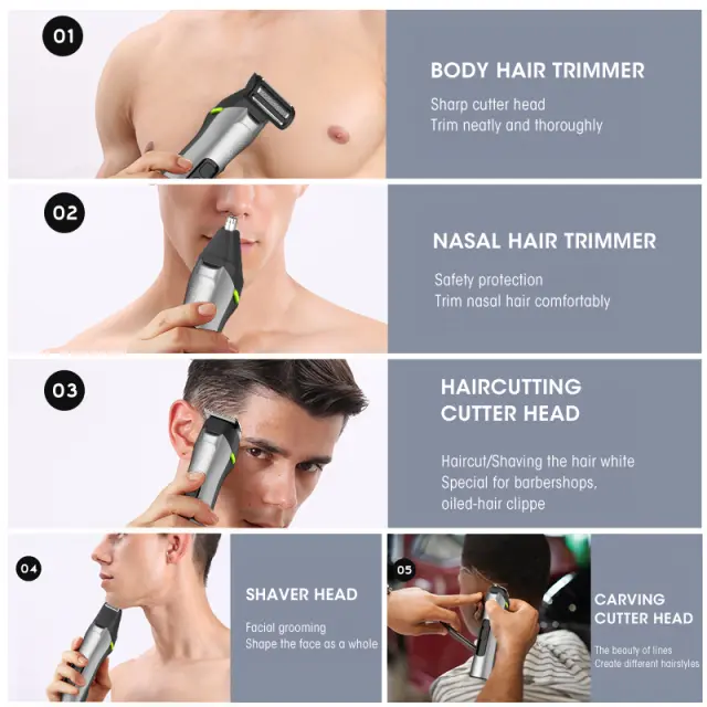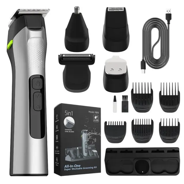Vse-v-enem urejanje: Ta 5-v-1 komplet za urejanje zagotavlja popolno rešitev za moške potrebe po urejanju. Vključuje strižnik za lase, rezilo za oblikovanje, trimer za zalizke, brivnik in trimer za nosne dlačice, vse v enem priročnem paketu. Ta vsestranski komplet odpravlja potrebo po več napravah, prihrani prostor in denar, hkrati pa zagotavlja, da ste vedno videti najbolje. Popoln za domačo uporabo ali potovanja, ta komplet je nepogrešljiv za vsakega moškega, ki ceni osebno urejanje.