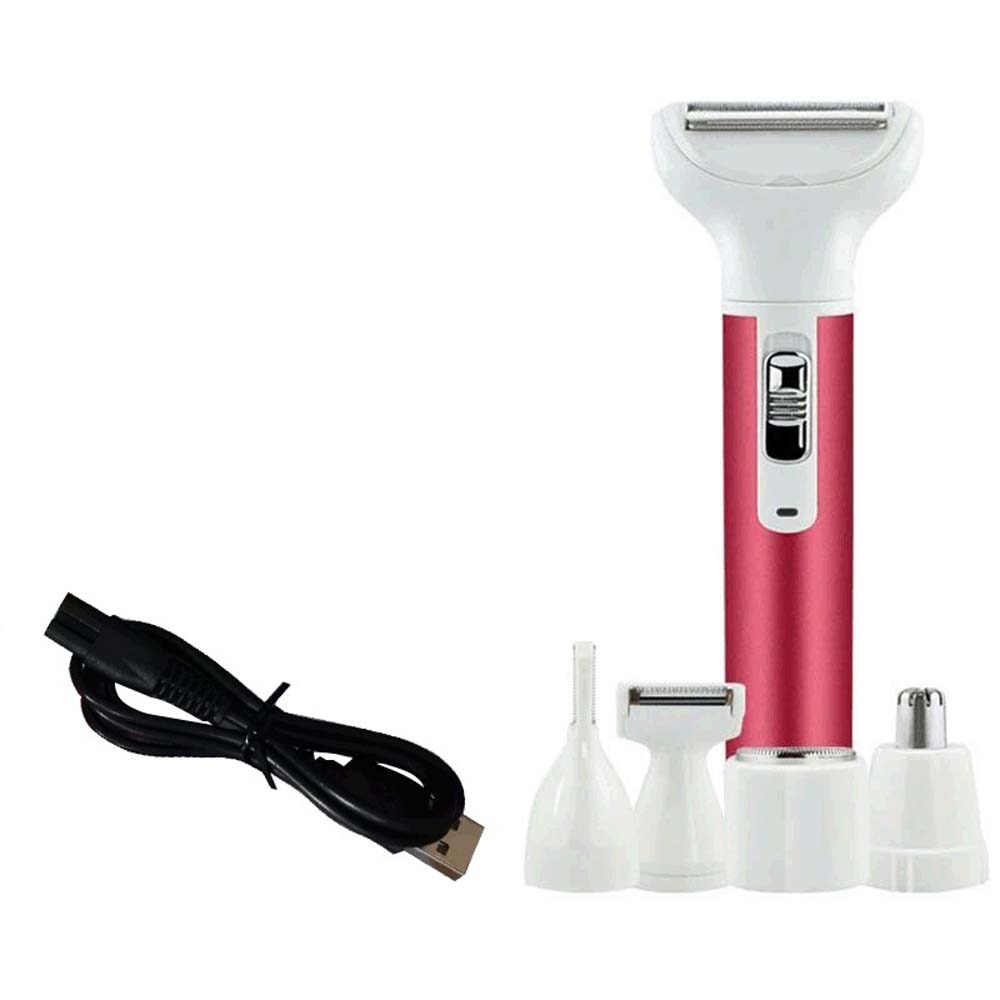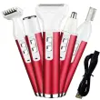 5-v-1 rdeči ženski električni brivnik: odstranjevanje dlak, obrvi in nosu