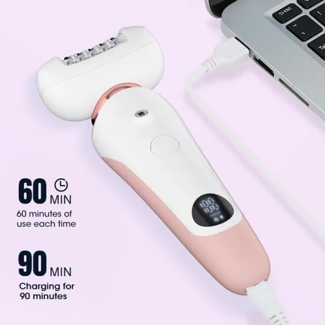 Brezžičen & za Polnjenje: Uživajte v svobodi brezžičnega delovanja z našim ženskim brivnikom za polnjenje. Vgrajena baterija zagotavlja do 60 minut delovanja z enim 90-minutnim polnjenjem, zaradi česar je popoln za potovanja ali uporabo na poti. Kabel USB za polnjenje vam omogoča enostavno polnjenje brivnika iz katerega koli vira napajanja USB. Ta brezžični brivnik ponuja udobje in prilagodljivost, saj ga lahko uporabljate kjer koli brez težav z žicami. Zasnova brivnika za polnjenje zagotavlja, da je vedno pripravljen, ko ga potrebujete, zaradi česar je vaša rutina odstranjevanja dlak enostavna.