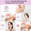 Brezbolečinsko Odstranjevanje Dlak: Izkusite neboleče in učinkovito odstranjevanje dlak z našim 5-v-1 ženskim brivnikom. Električni brivnik za ženske je zasnovan za nežno odstranjevanje neželenih dlak z obraza, telesa in bikini predela brez povzročanja draženja ali nelagodja. Uživajte v gladki koži brez dlak z lahkoto. Ta brezžični brivnik zagotavlja udobno in nebolečo izkušnjo, zaradi česar je idealen za občutljivo kožo. Nastavek za bikini trimer omogoča natančno urejanje na občutljivih predelih, medtem ko glava epilatorja zagotavlja dolgotrajne rezultate odstranjevanja dlak. Popoln za odstranjevanje dlak na obrazu in odstranjevanje dlak po celem telesu.