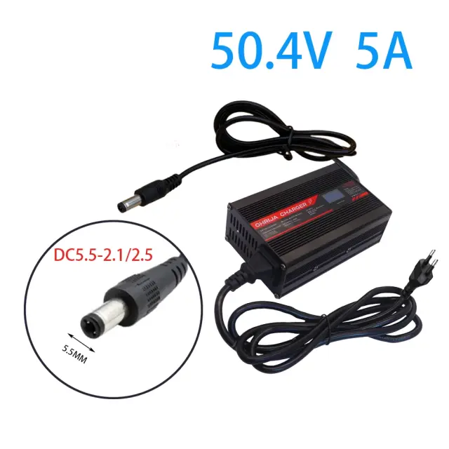 50.4V Litij-ionski polnilec baterij, 5A izhodna moč, več zaščitnih funkcij, DC5.5-2.5, EU-220V