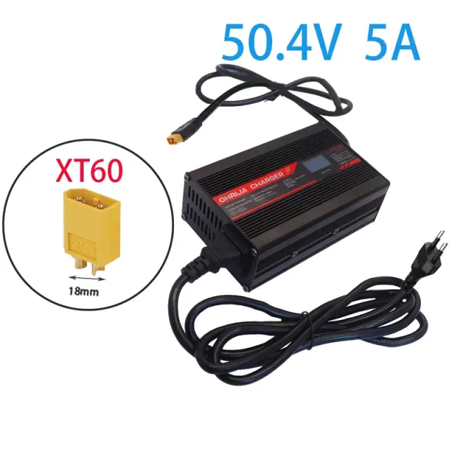 50.4V Litij-ionski polnilec baterij, 5A izhodna moč, več zaščitnih funkcij, XT60, EU-220V