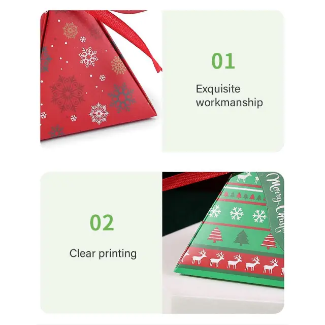 50 kosov okrasnih božičnih trikotnikov, škatle za sladkarije, božični trikotniki, škatle za naklonjenost z Božičkovim tiskom za festivalsko be