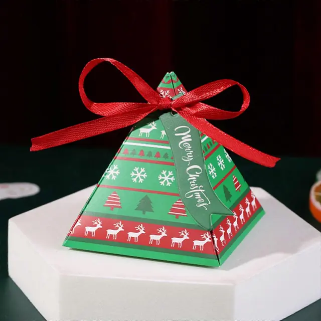 50 kosov okrasnih božičnih trikotnikov, škatle za sladkarije, božični trikotniki, škatle za naklonjenost z Božičkovim tiskom za festivalsko be