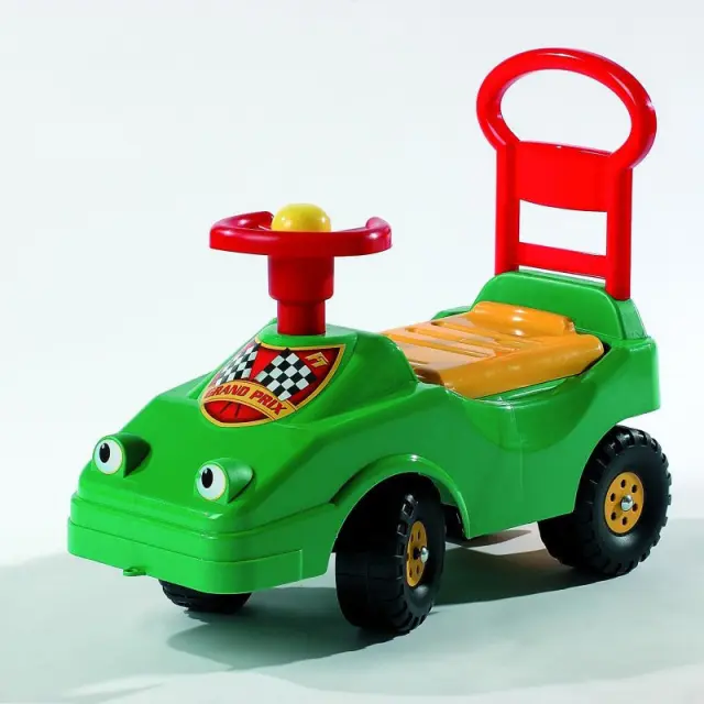 Zaradi širokih in stabilnih koles je poganjalček idealen za razvoj ravnotežja, motoričnih sposobnosti in samozavesti pri malčkih. Ima udoben sedež, ergonomično obliko in ročaje, primerno za male otroške roke. Dizajn v obliki "taksija" bo zagotovo navdušil male voznike.