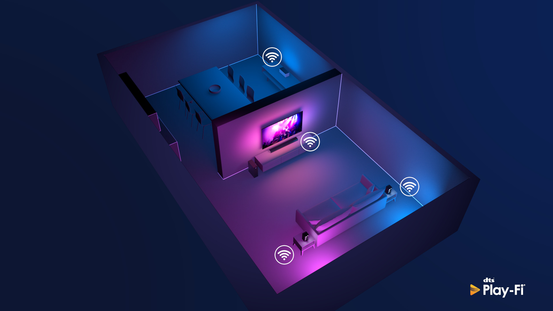 S pomočjo tehnologije DTS Play-Fi lahko povežete televizor Philips z združljivimi zvočniki v katerem koli prostoru. Imate v kuhinji brezžične zvočnike? Med pripravo prigrizkov prisluhnite filmu ali pa spremljajte športni prenos, medtem ko ostalim pripravljate pijačo.
