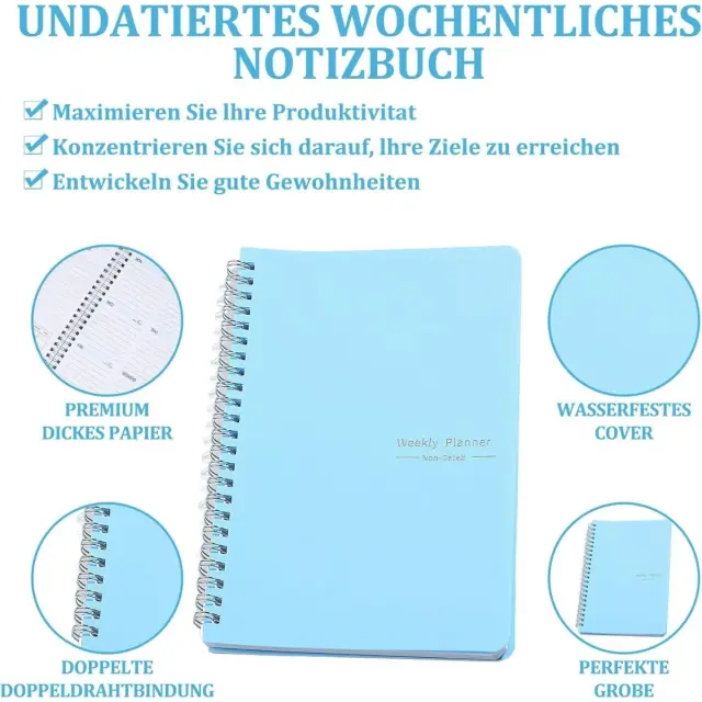 Izboljšana učinkovitost načrtovanja: Ta nedatirani tedenski planer omogoča prilagodljivo načrtovanje in učinkovito organizacijo vaših nalog. Za razliko od datiranih planerjev ga lahko začnete uporabljati kadar koli v letu, ne da bi pri tem zapravljali strani. Tedenska postavitev zagotavlja dovolj prostora za zapisovanje sestankov, rokov in pomembnih opomb, kar znatno izboljša vašo produktivnost in sposobnosti upravljanja s časom. Služi kot močno orodje za posameznike, ki iščejo prilagodljiv sistem načrtovanja.