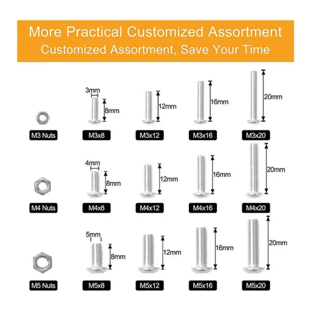 520PCS Set vijakov in matic s šestrobno glavo iz nerjavečega jekla 304