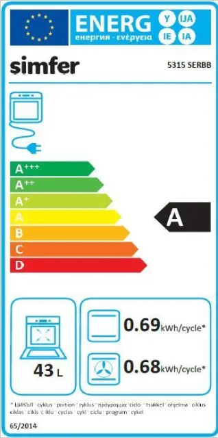 • kapaciteta pečice: 43 L