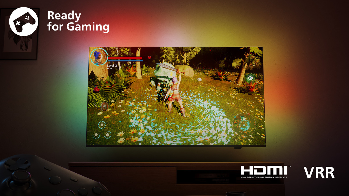 Ta televizor Ambilight odlikujejo HDMI 2.1, izvorna hitrost osveževanja 120 Hz in ultra nizka zakasnitev vhodnega signala. Game Bar 2.0 vam omogoča izboljšavo nastavitev, dodajanje ciljanja po meri in več. Lahko tudi povežete krmilnik Bluetooth in igrate v oblaku. Igralci računalniških iger pa lahko uživajo v 144 Hz VRR prek vhoda HDM