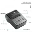 Parametri: Širina Papirja: 58mm, Širina Tiskanja: 48mm, Ločljivost: 203DPI, Hitrost Tiskanja: 70-90mm/s, Baterija: 2000mAh