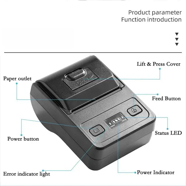 Vsestranska Bluetooth povezljivost: Brezhibno integrirajte ta 58mm termalni tiskalnik z vašimi obstoječimi sistemi preko Bluetootha. Kompatibilen z napravami Android, iOS in Windows, ponuja vsestransko povezljivost za različne aplikacije, od mobilnih sistemov prodajnih mest do upravljanja naročil v restavracijah. Uživajte v svobodi brezžičnega tiskanja, odpravite nered kablov in omogočite prilagodljivo postavitev znotraj vašega delovnega prostora. Idealen za podjetja, ki iščejo učinkovito in poenostavljeno poslovanje, ta tiskalnik, ki podpira Bluetooth, zagotavlja zanesljivo delovanje in enostavno integracijo z vašimi najljubšimi napravami. Popoln za tiskanje računov, vstopnic in nalepk na poti.