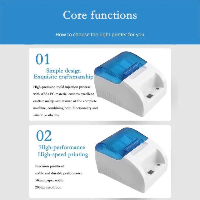 Tiskanje visoke ločljivosti: Z ločljivostjo 203DPI ta 58mm termalni tiskalnik računov zagotavlja ostre in jasne izpise, kar zagotavlja, da so vsi vaši računi lahko berljivi. Visoka ločljivost izboljša čitljivost besedila, črtnih kod in grafik, kar zagotavlja profesionalen videz vašega podjetja. Ta funkcija je še posebej pomembna za podjetja, ki morajo na svojih računih natisniti podrobne informacije, kot so opisi izdelkov, promocijske ponudbe ali podrobnosti programa zvestobe strank. Navdušite svoje stranke z visokokakovostnimi računi, ki odražajo profesionalnost vaše blagovne znamke. Ločljivost 203DPI zagotavlja, da je vsak izpis oster in natančen.