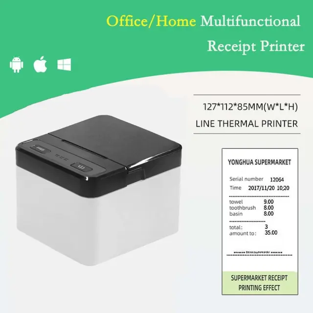 Vsestranska povezljivost: Brezhibno integrirajte ta 58mm termalni tiskalnik potrdil v vaše obstoječe sisteme z USB in Bluetooth povezljivostjo. Ta dvojni vmesnik omogoča enostavno povezavo s široko paleto naprav, vključno s sistemi Android, iOS in Windows. Idealen za maloprodajo, gostinstvo in storitve dostave hrane, ta tiskalnik zagotavlja zanesljivo delovanje in poenostavljeno poslovanje. Uživajte v prilagodljivosti žičnih in brezžičnih možnosti tiskanja, optimizaciji poteka dela in zmanjšanju nereda kablov. Funkcija Bluetooth omogoča mobilno tiskanje s pametnih telefonov in tabličnih računalnikov, kar povečuje učinkovitost in priročnost za transakcije na poti. Ta tiskalnik je kot nalašč za podjetja, ki iščejo vsestransko in prilagodljivo rešitev za tiskanje.