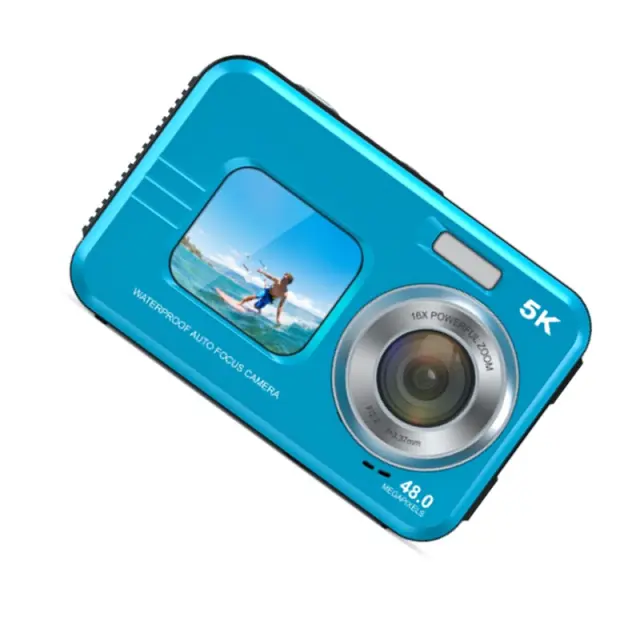 5K Vodoodporni Digitalni Fotoaparat z Dvojno Kamero za Družinsko Uporabo Blue