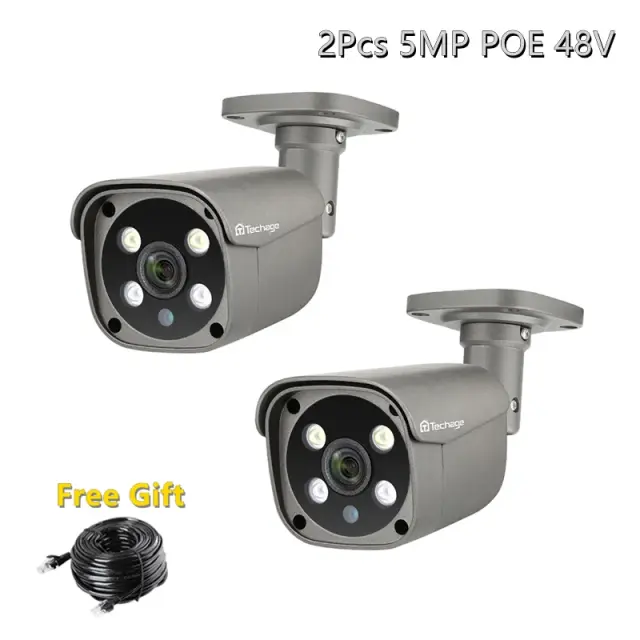 5MP Varnostna Kamera, Polna Barvna Nočna Vizija, Dvosmerna Avdio Komunikacija -2Pcs 5MP POE 48V