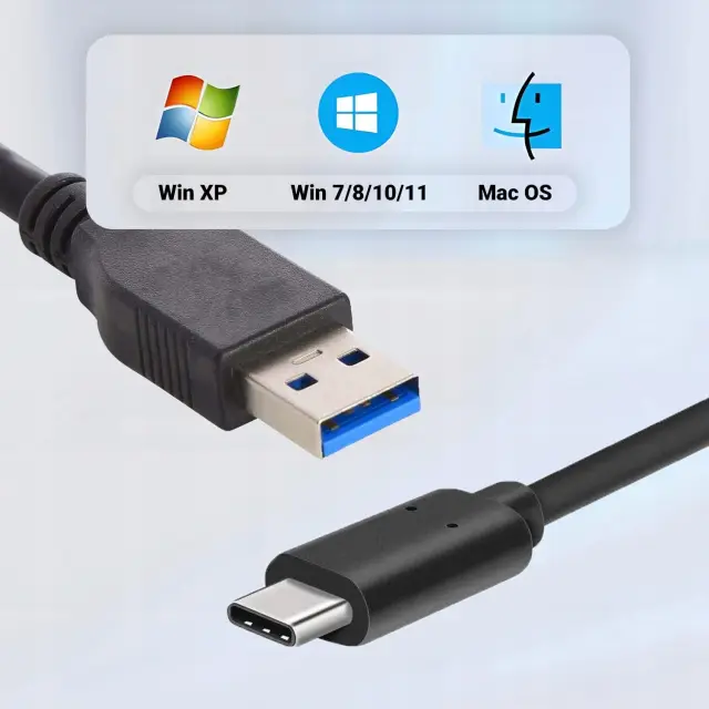Zahvaljujoč številnim priključkom (USB 3.0, USB 2.0 in USB-C) je naprava združljiva z večino prenosnikov, namiznih računalnikov in sodobnih ultrabookov ter ponuja hiter prenos podatkov in vsestranskost uporabe.