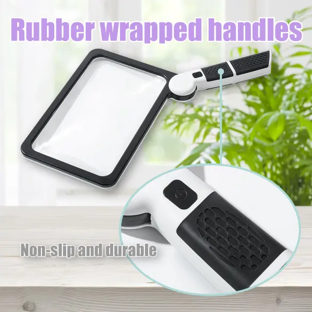 Povečevalno steklo ima pravokotno obliko z velikim vidnim poljem, kar zmanjšuje potrebo po nenehnem premikanju rok. Z vgrajeno LED lučko, ki prav tako pripomore k boljšemu vidu. Samo povečevalno steklo lahko obračate v različne smeri, da imate najboljši oprijem. Popoln za branje, raziskovanje, nakit, pregledovanje in več.