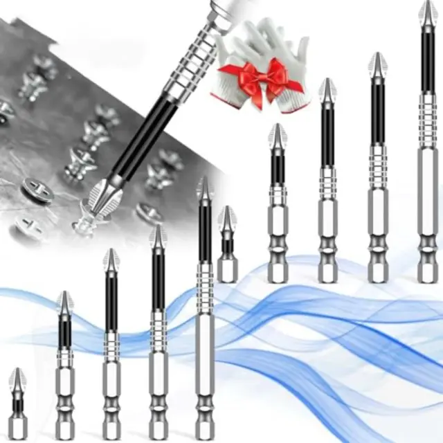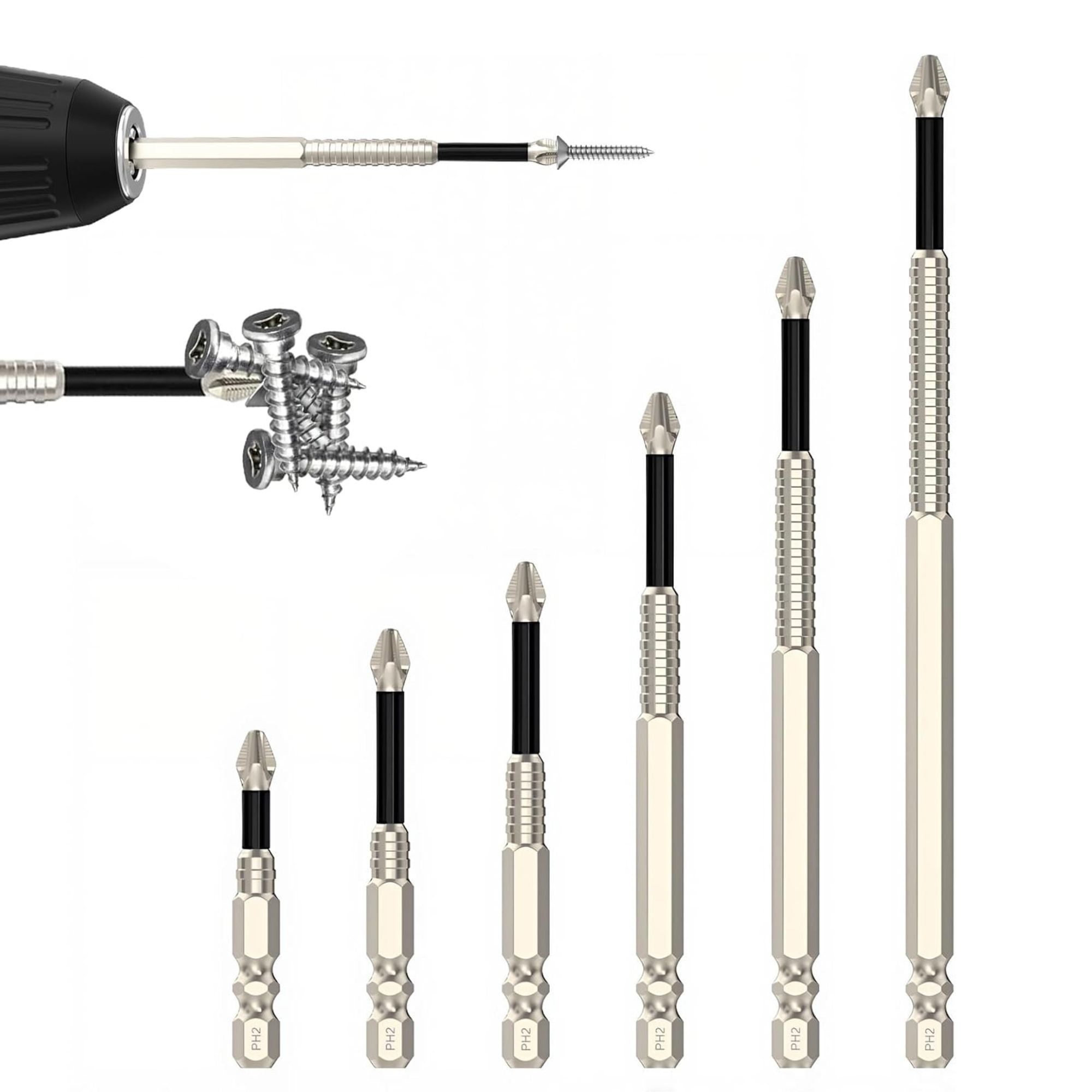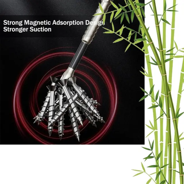 Vsak nastavek je opremljen z močnim magnetom na koncu, kar omogoča enostavno pobiranje in varno pritrditev vijakov brez drsenja ali popuščanja.