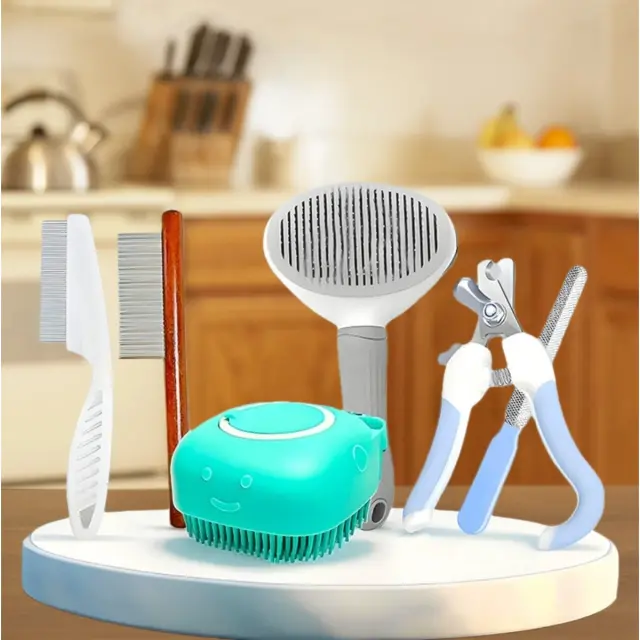 6-delni komplet za nego hišnih ljubljenčkov: orodja za kopanje, masažo, česanje in čiščenje
