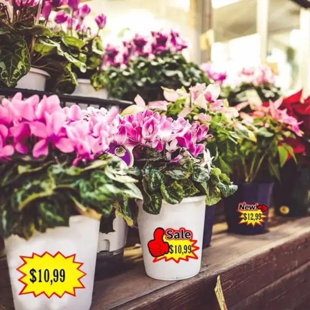 Ti živahni znaki so popolni za označevanje cen v trgovinah, še posebej med velikimi razprodajami. Primerno za trgovine ali velike nakupovalne centre, kartice supermarketov, garaže, šolske karnevale itd.