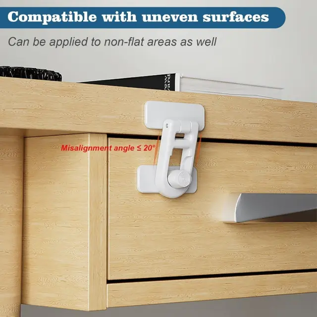 Enostavna namestitev: Prosimo, upoštevajte: to niso originalni deli. Enostavna namestitev z močnim lepilnim slojem omogoča hitro in brezhibno pritrditev brez vrtanja ali orodja. Površino očistite, odstranite zaščitni sloj in pritisnite zaporo na mesto. Za optimalno oprijemljivost počakajte 24 ur pred prvo uporabo. Ta rešitev je idealna za najemnike ali tiste, ki želijo začasno otroško zaščito brez poškodb pohištva.