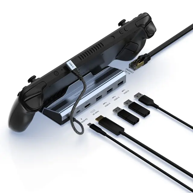 Vsestranska povezljivost 6-v-1: Ta priklopna postaja 6-v-1 ponuja celovito rešitev za razširitev povezljivosti vaše igralne konzole Steam Deck ali Asus. Vključuje vrata Type-C/M za napajanje (PD), tri vrata USB 3.0 za priključitev zunanjih naprav, kot so tipkovnice, miške in zunanji pomnilnik, vrata RJ45 gigabit ethernet za stabilne in hitre omrežne povezave ter izhod HDMI 2.0 za izhod zaslona visoke ločljivosti do 4K. Ta priklopna postaja spremeni vašo ročno konzolo v vsestransko delovno postajo ali zabaviščno središče, kar izboljša vašo igralno in produktivno izkušnjo. Integrirana zasnova zagotavlja, da so vsa bistvena vrata takoj na voljo, kar odpravlja potrebo po več adapterjih in ohranja vašo nastavitev čisto in organizirano. Uživajte v brezhibni večopravilnosti in izboljšani funkcionalnosti s to rešitvijo vse-v-enem.