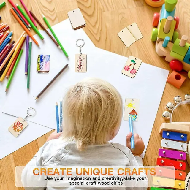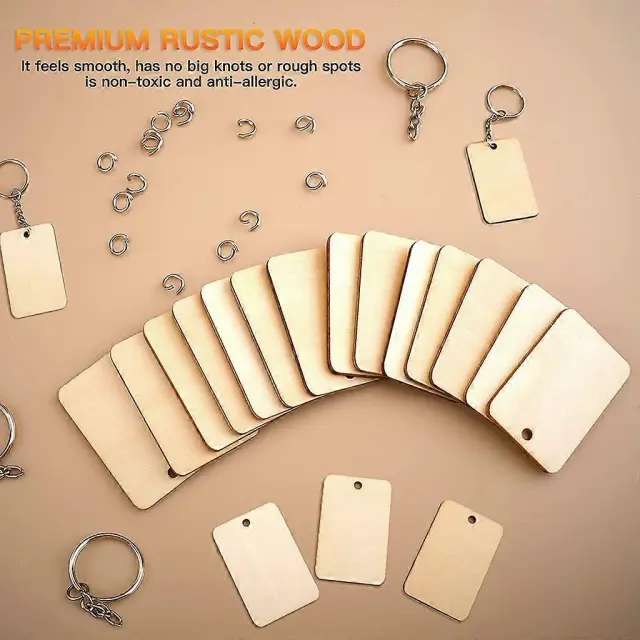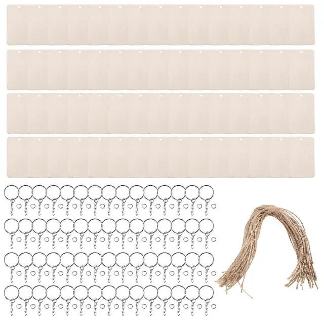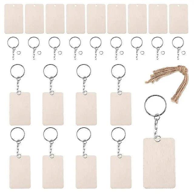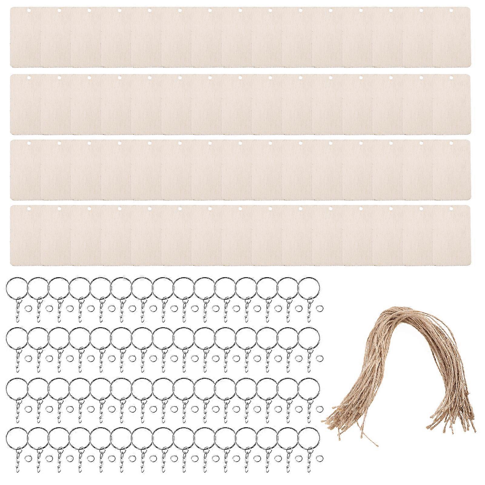 60 kosov pravokotnega obeska za ključe iz lesnih sekancev Prazen obesek iz lesnih sekancev DIY obesek za ključe