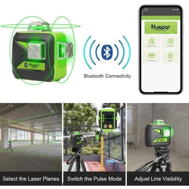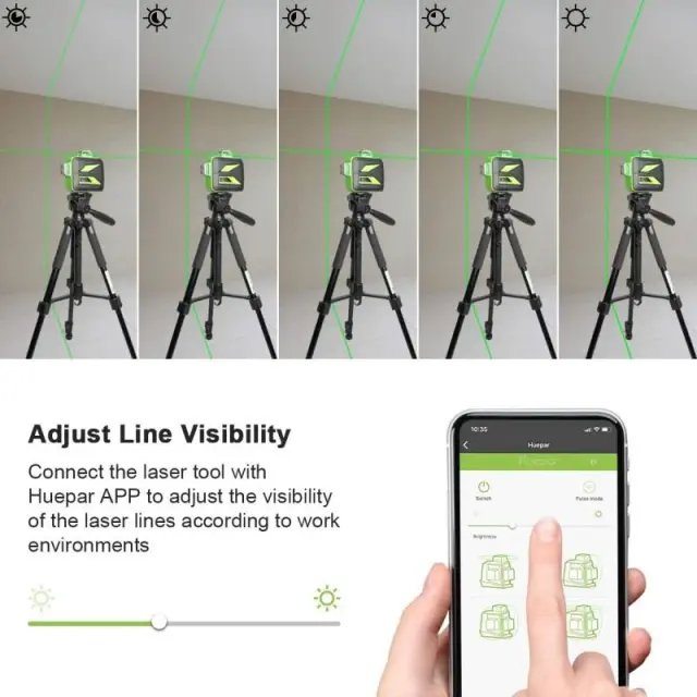 Vidnost / svetlost laserskega žarka lahko prilagodite s povezovanjem na APP Huepar.